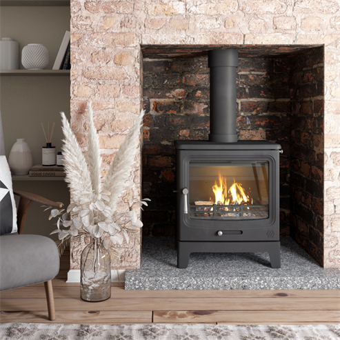 With a nominal output of 4.9kW and a versatile range of 4-7kW, the Vue Landscape delivers powerful and efficient heating performance. Its full cast iron construction not only ensures durability but also ensures optimal heat distribution, keeping your space comfortably warm for hours.